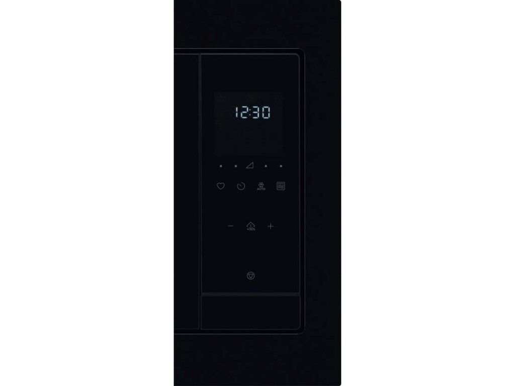 Elegantní minimalistický design mikrovlnné trouby ve vysoce lesklé černé barvě ladí s troubou a dalšími spotřebiči.