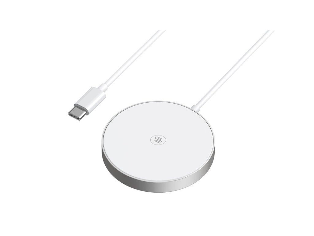 Bezdrátová nabíječka GoGEN MagSafe, Qi2, 15W - stříbrná/bílá