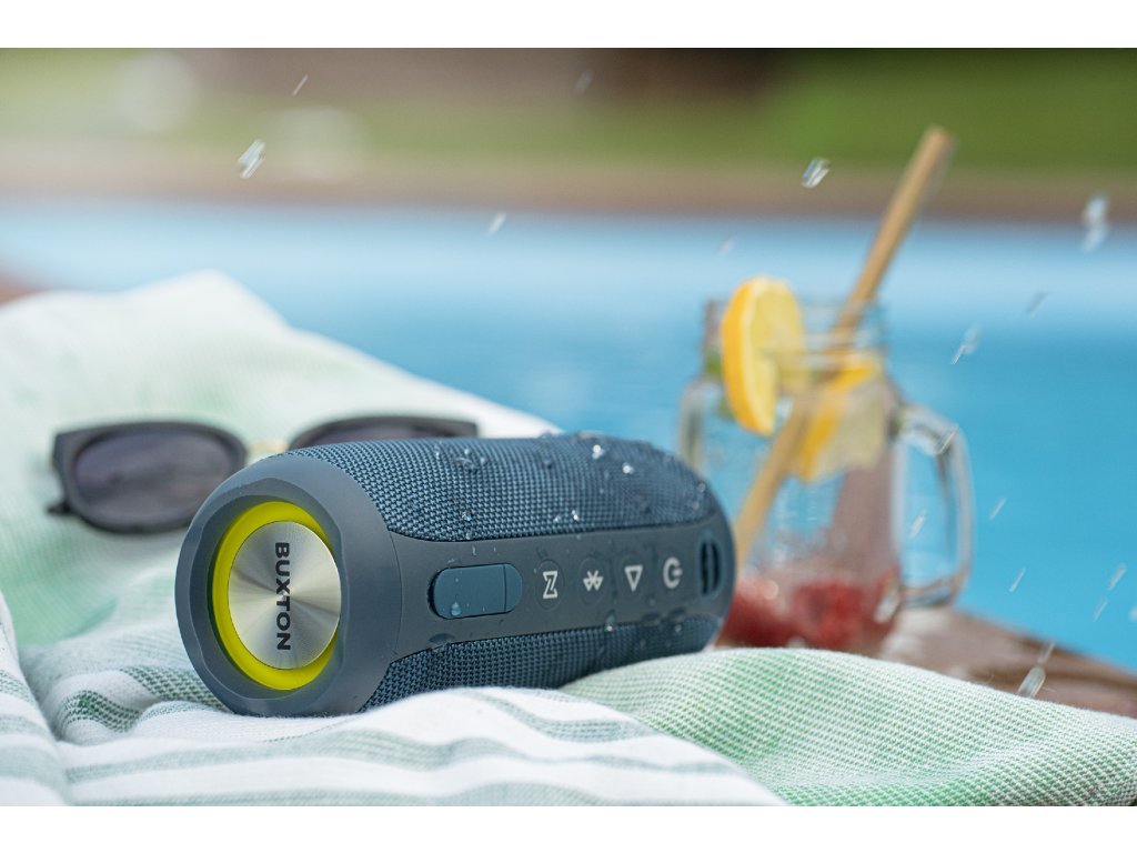 Praktický, nadupaný, jednoduše přenosný. Bluetooth reproduktor Buxton je skvělý zdroj s jasnou a až překvapivě dynamickou reprodukcí muziky i slov. Na první pohled vážně těžko uvěřit, jak dobře tenhle kompaktní reproduktor hraje. A to ho ještě můžete bezdrátově přes TWS propojit s dalším BBS 5500! Tahle dvojčata vám pak dodají hodně slušný výkon 60W, takže ať je párty v obýváku, na zahradě, mezi paneláky nebo na louce, zvuk bude jako víno. Plnorozsahový „Racetrack" reproduktor doplňují dva pasivní zářiče, Power Bass nabudí a rozduní basy. Hrát můžete fakt kdekoli – když nabijete baterku až na doraz a dáte volume na půlku, hraje reproduktor nepřetržitě až devět hodin! Teďuž jen stačí vychytat výběr muziky – a můžete to rozjet.