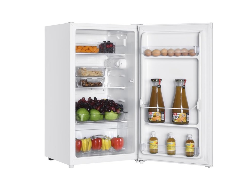 Celkový objem chladničky je 88 litrů a je prakticky rozdělena dvěma skleněnými policemi. Ve spodní části najdete transparentní šuplík na ovoce a zeleninu. Dveřní přihrádky jsou ideální pro skladování nápojů, omáček či různých sals, které by zabíraly místo v lednici.