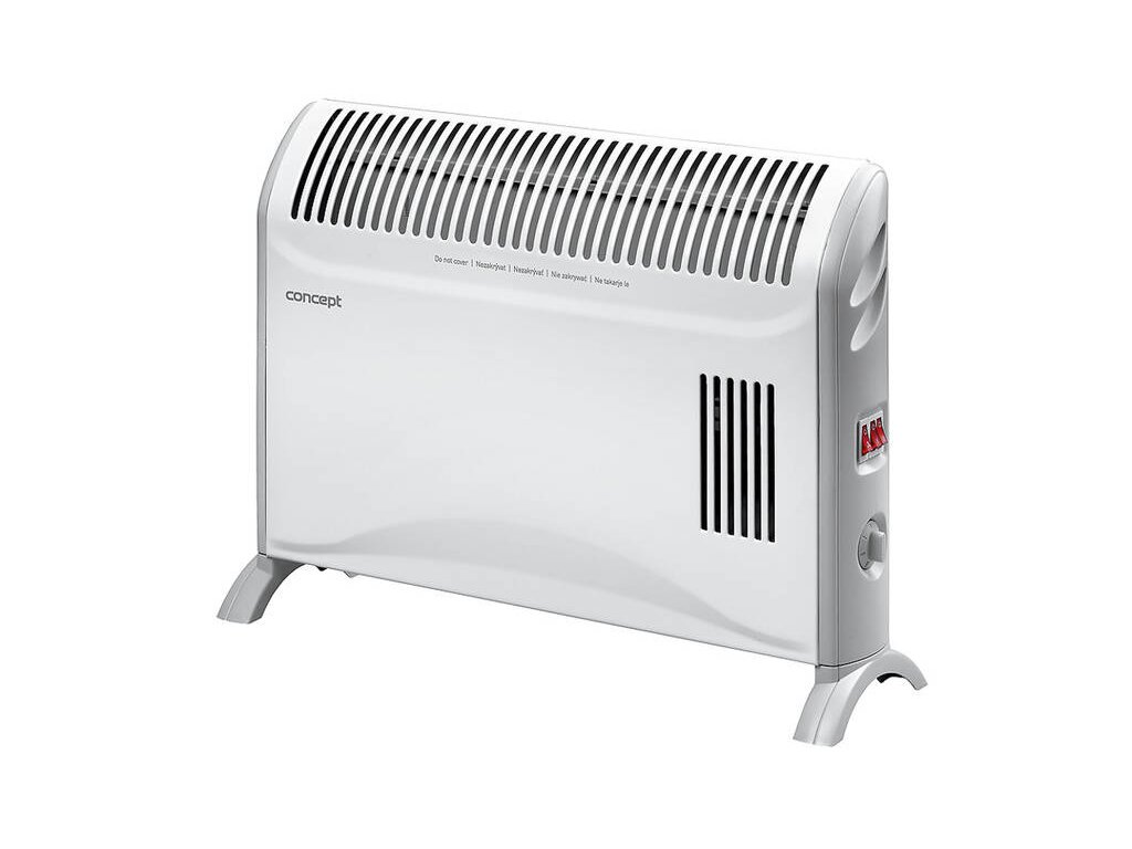 Konvektor české značky CONCEPT v bílé barvě s ventilátorem.
