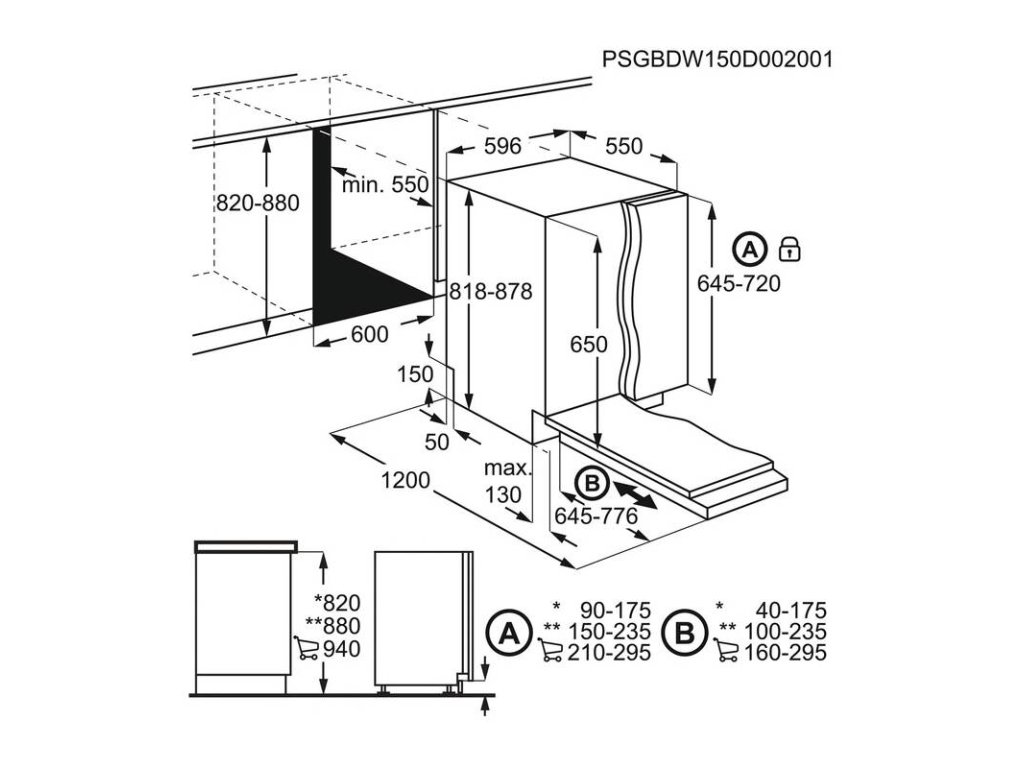 • Vestavné rozměry V(min/max)xŠxH (mm): 820/880 x 600 x 550