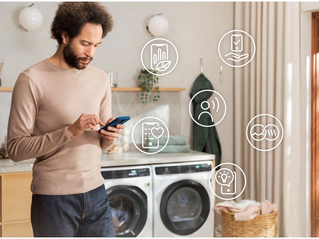 Propojte svůj spotřebič s aplikací Electrolux, a získejte možnost dálkového ovládání, informace o stavu v reálném čase a doporučení, jak ušetřit zdroje na základě používání vašeho spotřebiče. Propojte s pomocí aplikace pračku a sušičku, a ušetřete čas díky synchronizovaným programům praní a sušení.