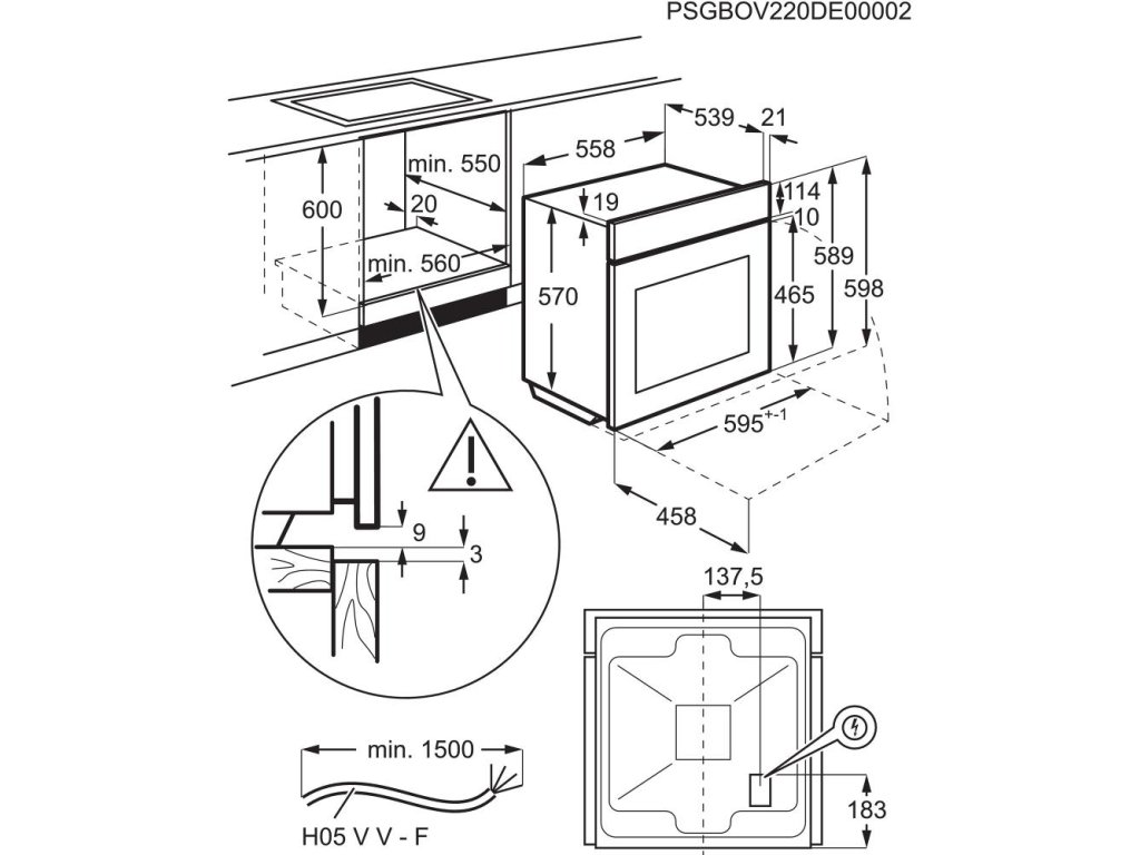 - Rozměry pro vestavbu (Š × V × H): 560 × 590 × 550 mm