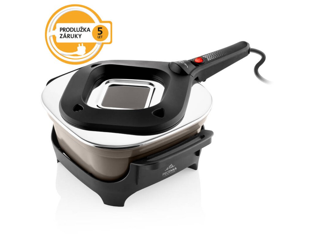 ETA Pečenka přichází v novém, zdravějším kabátě – s pečicí nádobou s nepřilnavým keramickým povrchem, Pečení je úsporné a chutné, ale i šetrnější ke zdraví. Zachovává si současně všechny oblíbené přednosti Pečenky – rychlý ohřev, rovnoměrné pečení a nízkou spotřebu energie. Zvládne vaření, dušení, zapékání i sladké dezerty.