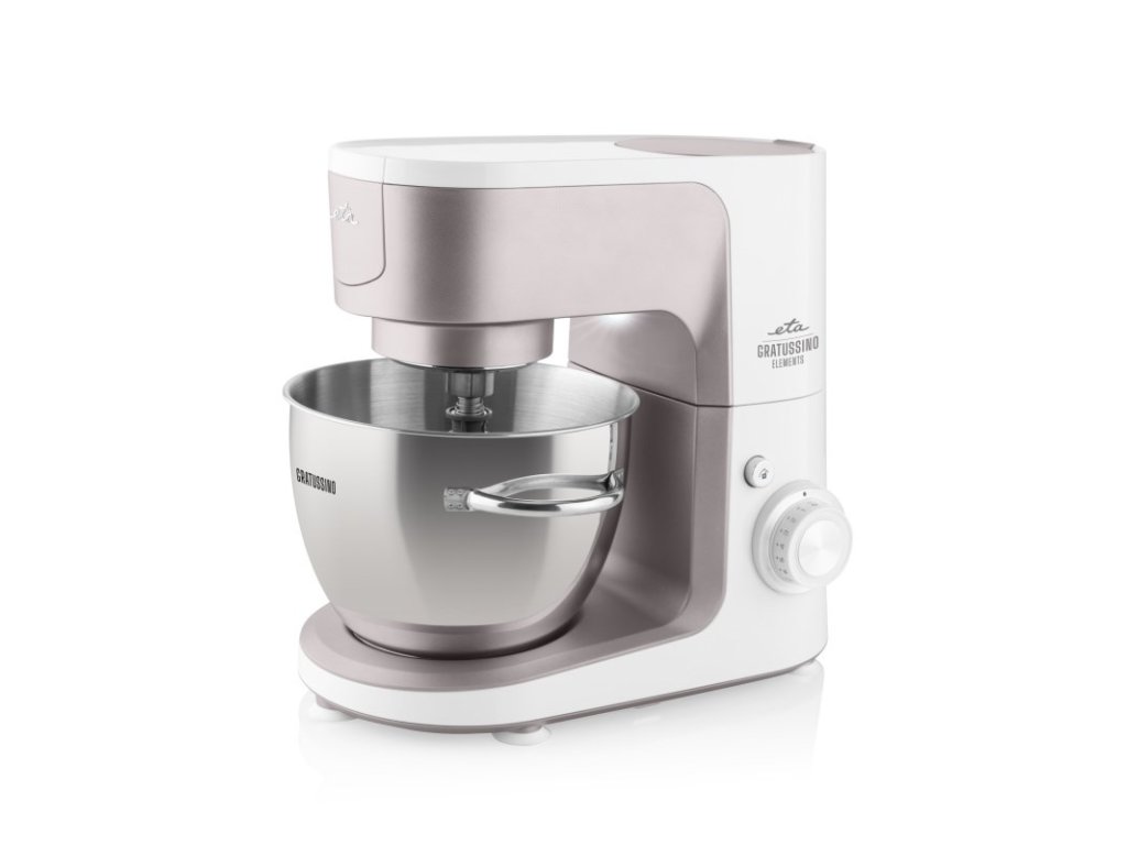 I když je kuchyňský robot ETA Gratussino III Elements o něco menší než jeho větší bratři, v ničem nezaostává. Výkonný 1200W motor s tichým chodem a kovová převodová kola zajišťují dlouhou životnost a stabilní výkon. Planetární systém míchání rovnoměrně zpracuje všechny suroviny v nerezové míse o objemu 4,5 litru, která je navíc vybavena praktickými držadly a průhledným krytem.