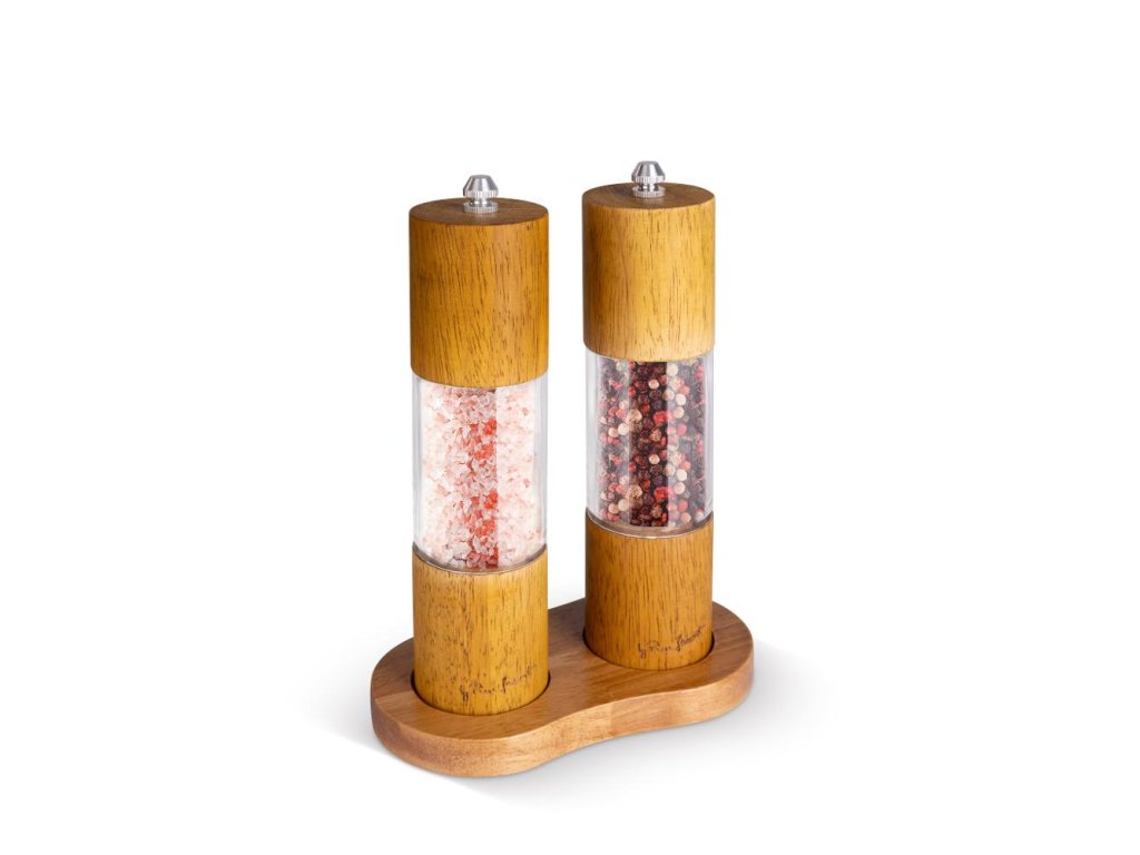 Sada zahrnuje dva mechanické mlýnky na koření a stojánek