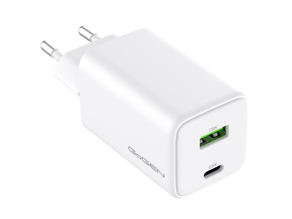 Nabíječka do sítě GoGEN ACHPDQ265, 1x USB-C PD 65W + 1x USB-A 18W - bílá