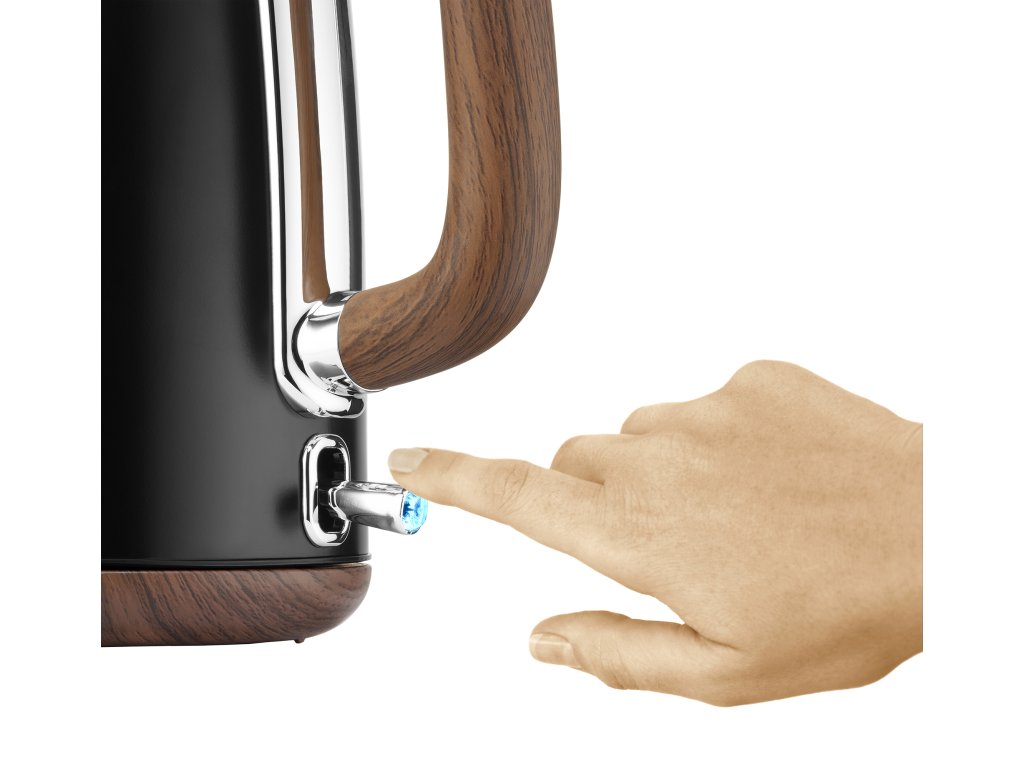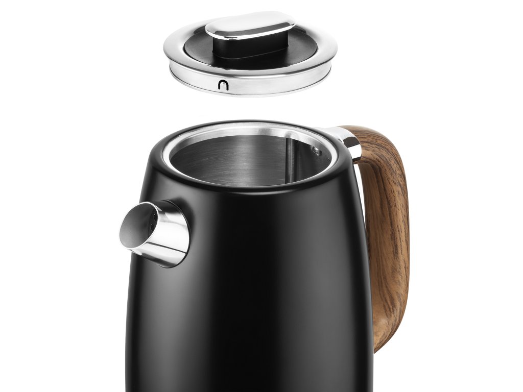 Designová rychlovarná konvice o objemu 1,7 l je vybavena kvalitním středovým konektorem STRIX, spínačem s LED kontrolkou provozu a funkcí automatického vypnutí při dosažení varu nebo při nedostatku vody.