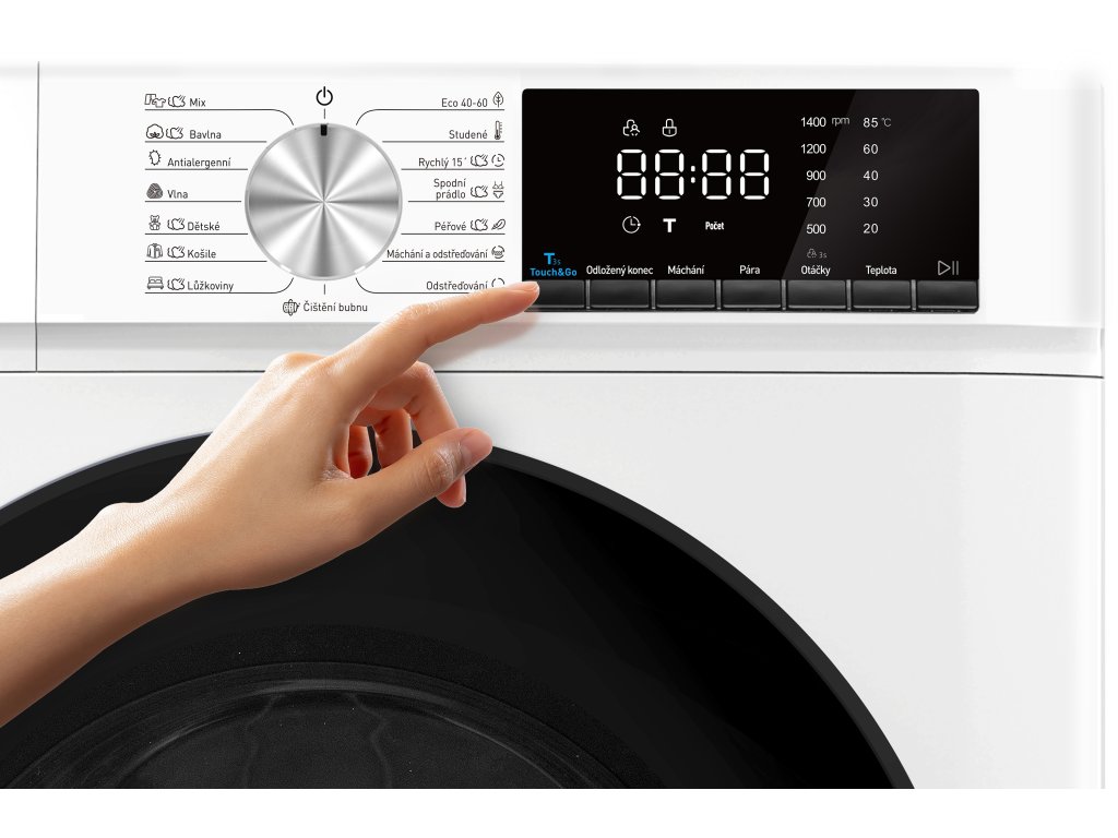 Používání pračky vám usnadní tlačítko Touch&Go, které spustí automatické vážení vloženého prádla a na základě množství pak vybere jeden ze 3 přednastavených programů. O tišší chod pračky se postarají 3 tlumiče, které zaručují nižší vibrace během odstřeďování i během samotného praní. Pro větší bezpečí máte možnost nastavit dětskou pojistku. Pračka je vybavena kvalitním invertorovým motorem se zárukou prodlouženou na 10 let.