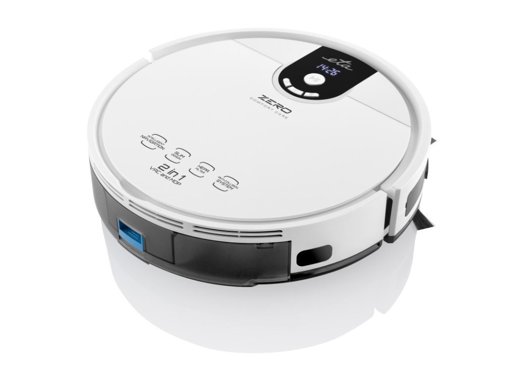 Robotický vysavač ETA Zero se postará o důkladný úklid vaší domácnosti. Nejen, že perfektně vysaje, ale následně vaši podlahu i vytře. Díky novému digitálnímu motoru se můžete spolehnout na vysoký sací výkon, a to i na kobercích (s výškou vlasu do 1 cm).