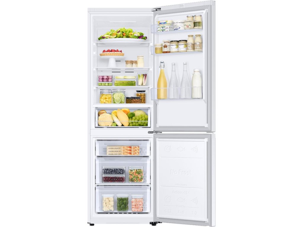 Další vybavení chladničky: Funkce rychlé chlazení; přihrádka na vejce a mléčné výrobky; zásobník na lahve ve dveřích; zásuvka na ovoce a zeleninu, horní LED vnitřní osvětlení; skládací polička