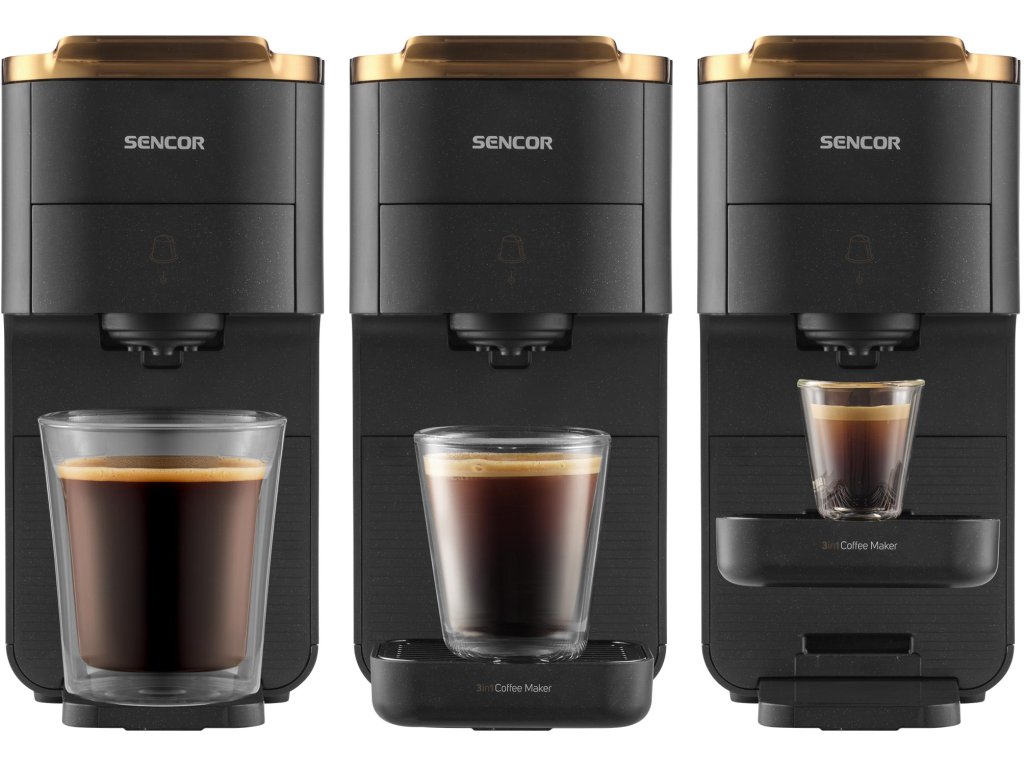 Objevte maximální flexibilitu s multikapslovým kávovarem Sencor SCC 1000BK! Díky systému 3 v 1 si vychutnáte kávu z kapslí Nespresso® Original*, NESCAFÉ® Dolce Gusto®, E.S.E. podů i mleté kávy. Výkonné čerpadlo s tlakem 20 barů zajistí dokonalou cremu, zatímco rychlé předehřátí za 45 sekund vás ráno nezdrží. Kompaktní design, dotykový LED panel, nastavitelný objem šálku a odnímatelný podnos pro různé velikosti hrnků dělají z tohoto kávovaru ideálního pomocníka do každé kuchyně. S velkou nádržkou na vodu (1,5 l), programem odvápnění a automatickým vypnutím po 15 minutách je navíc úsporný a snadno udržovatelný.