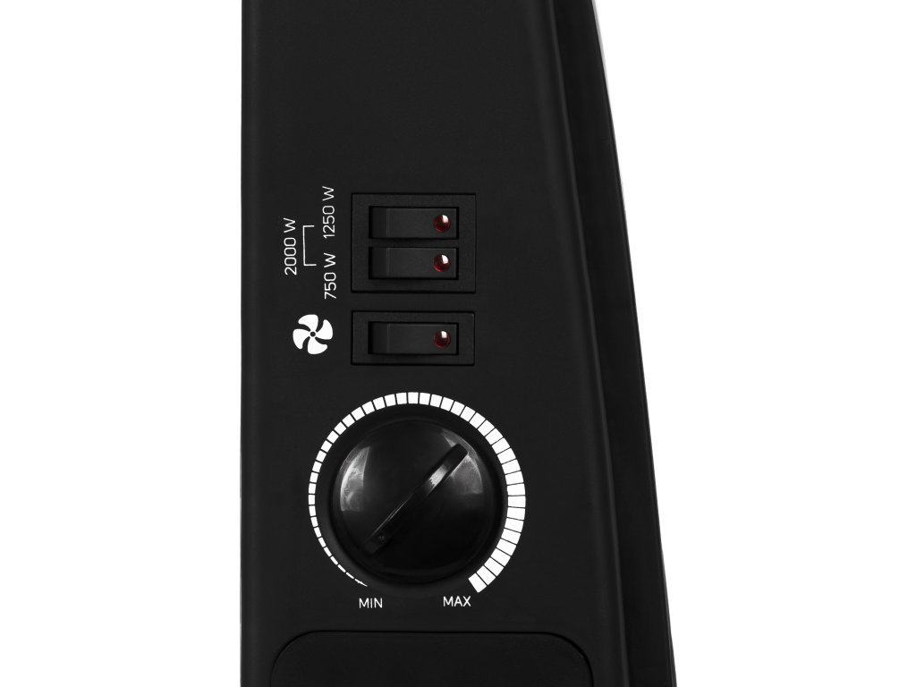 Plynule regulovatelný termostatZabudovaný ventilátor pro rychlejší distribuci tepla v místnostiOchrana proti přehřátíSvětelná kontrolka zapnutí topných tělesIntegrované rukojeti pro snadné přenášení přístrojeVolně stojící nebo možnost připevnění na stěnu3 stupně nastavení topného výkonu - 750/1250/2000 WMaximální příkon 2000 W