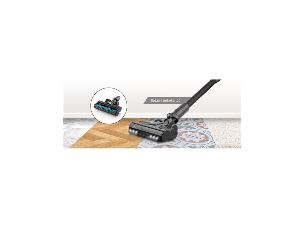 - Velký rotační turbokartáč a flexibilním kloubem - je určen speciálně pro vysávání koberců s nízkým vlasem, parket a tvrdých podlah (linolea, dlažby či plovoucích podlahy). Jeho kartáček je šetrný a při vysávání eliminuje riziko poškrábání podlahy.